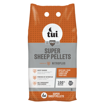 Tui Super Sheep Pellets are a unique combination of New Zealand sheep manure and NitroPlus fast acting compound fertiliser. NitroPlus gives your garden an instant boost – while sheep pellets break down over time, conditioning your soil and adding organic matter to improve soil structure. The combination of fast acting and long lasting fertilisers will make your garden show-ready in no time.