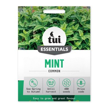Tui Mint Seed - Common is an easy to grow herb with versatile flavour for cooking, preserves and drinks. Harvest as required and the plant will regrow. Grow in a pot to prevent it from spreading through your garden.